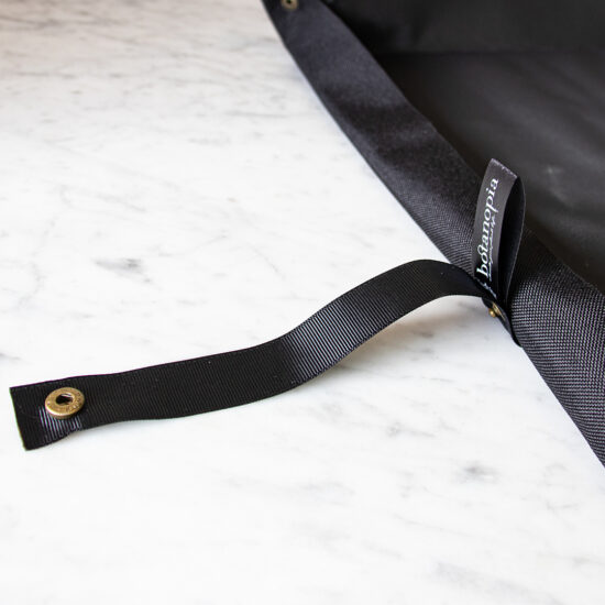 Die Plane (56×46 cm) besteht aus recyceltem Polyester, einem robusten und absolut wasserdichten Material. Du kannst sie ganz einfach auf deiner Arbeitsplatte, deinem Tisch oder sogar deinem Fußboden ausrollen, ohne dass du dir Sorgen machen musst, dass alles dreckig wird. Die Ränder sind leicht erhöht, um Wasser, Erde und verirrte Blätter zurückzuhalten.
